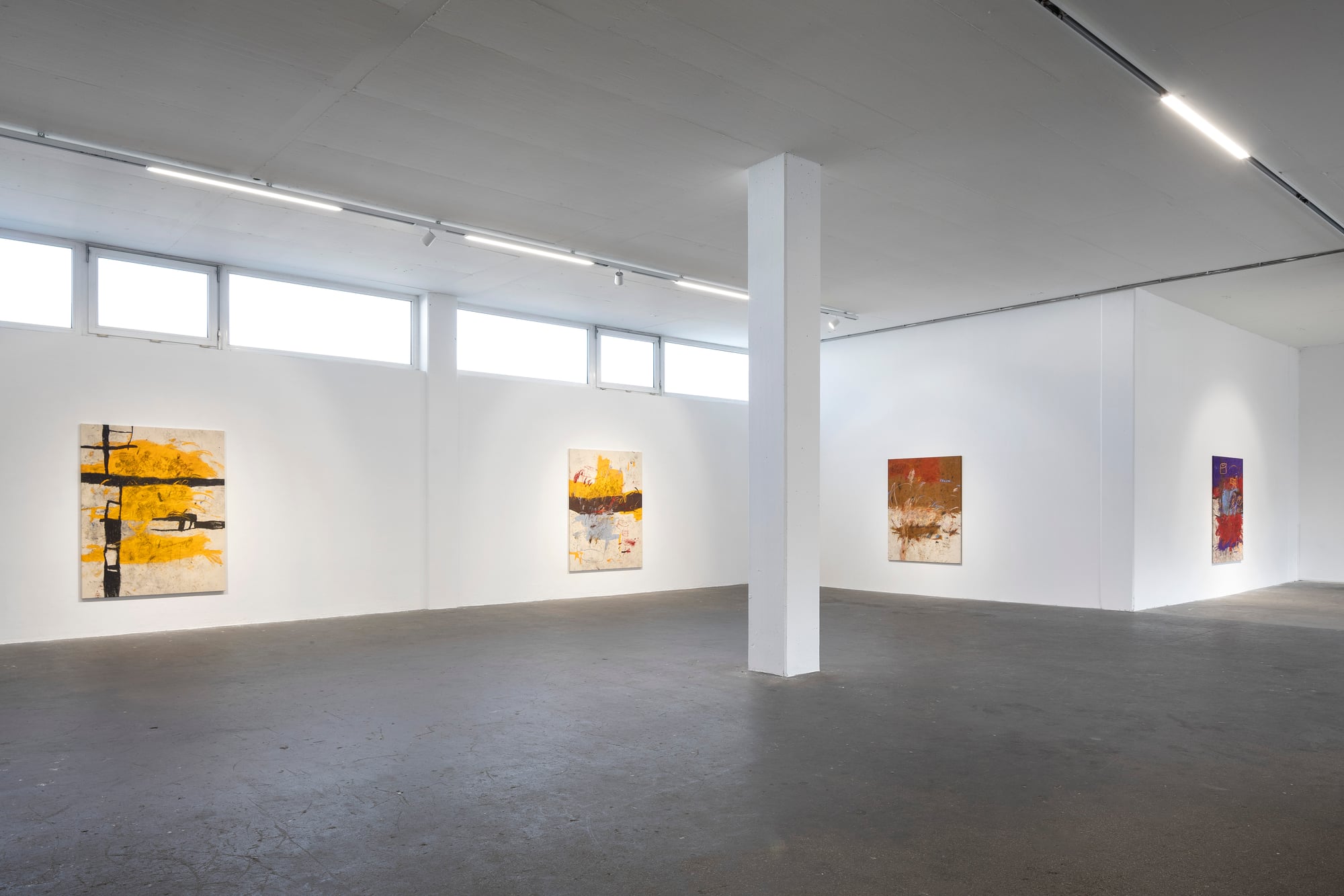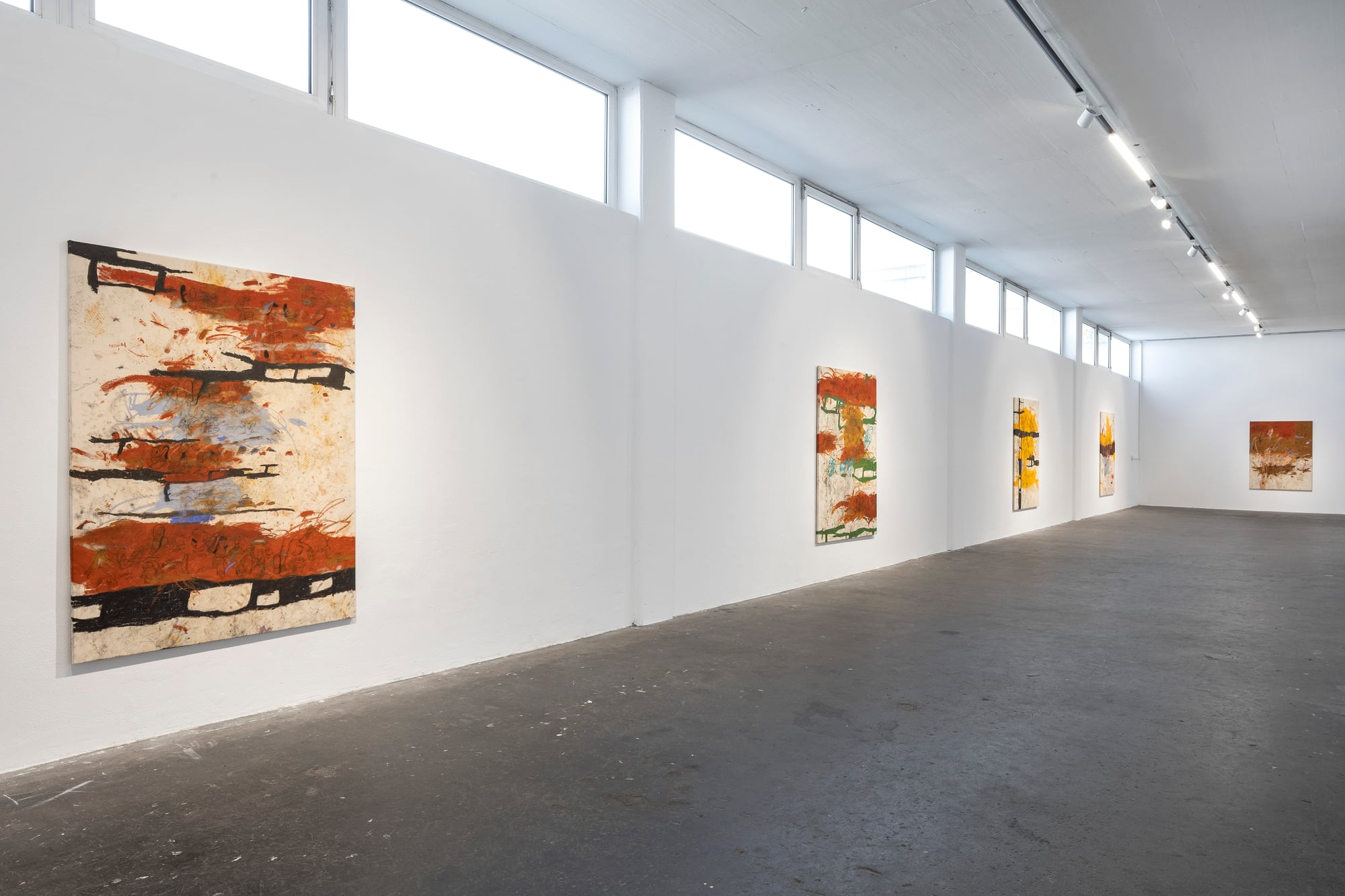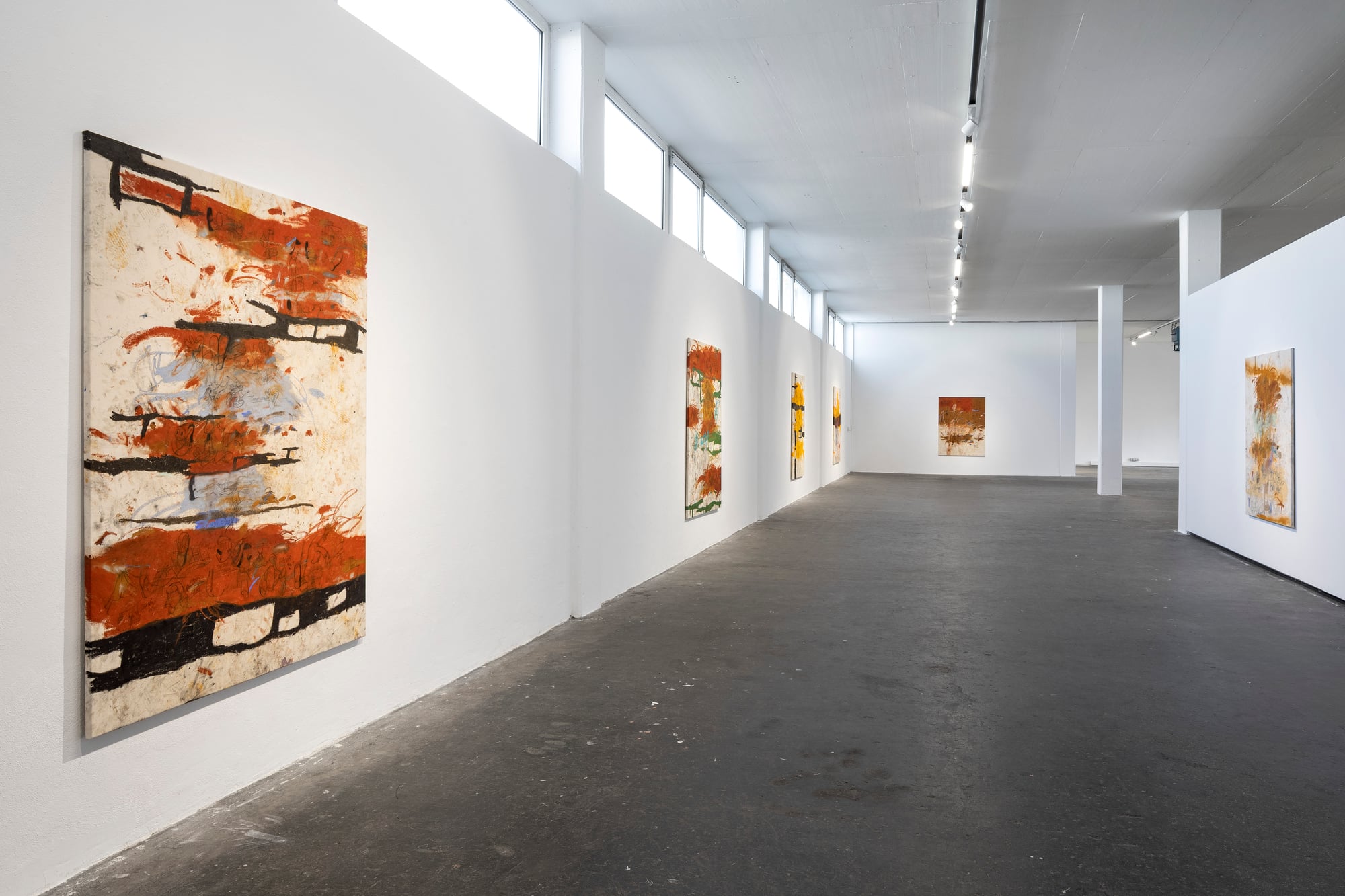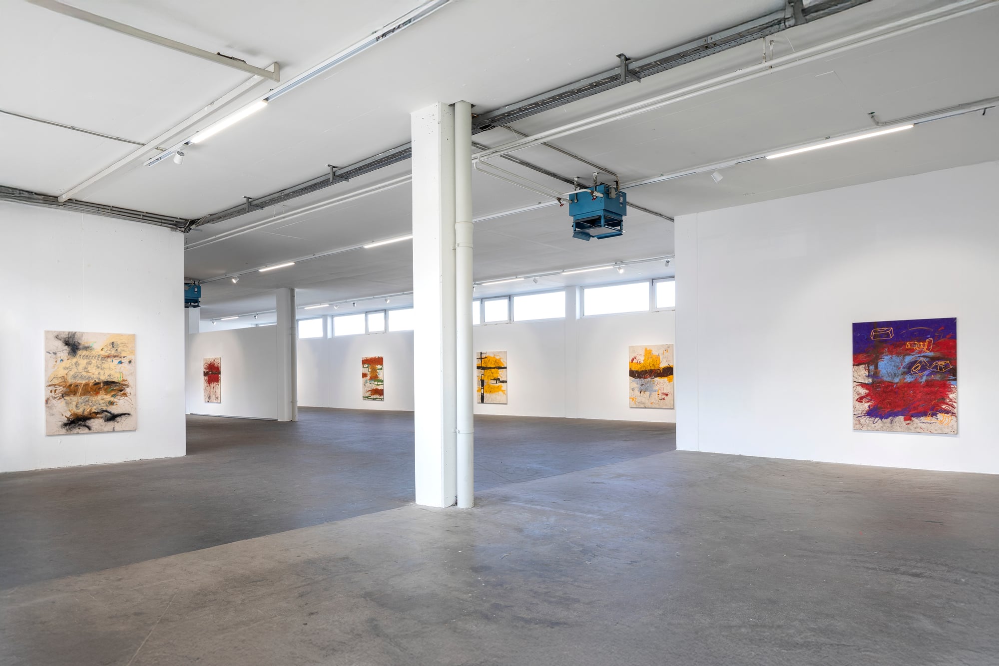Ester Parasková – FUGAZI Fragmented Disney figures appear as anonymized archetypes: incomplete, deformed, yet instantly recognizable through bodily signatures embedded deep within collective visual memory. Their repeated precision recalls motion studies and early modern attempts to mechanize movement—moments when motion itself carried the promise of revolt. For Parasková, these figures become markers of labor, echoing both the repetitive work of Disney animators and her own experience in factory production. Deformation, fragmentation, and repetition function not as pure analysis, but as a dialectical process in which the breakdown of mechanical systems simultaneously constructs them. Situated between work and gesture, appropriation and authenticity, Parasková’s paintings embrace repetition while resisting its logic. Traces of physical confrontation—dirt, smudges, footprints—remain visible, grounding the images in bodily presence. FUGAZI—fake, feigned, illusory—names this tension directly: the artist mechanically reproduces what is already endlessly reproduced, yet through distortion and layering transforms it into a charged, combative visual language. The result is painting as struggle—urgent, physical, and unresolved